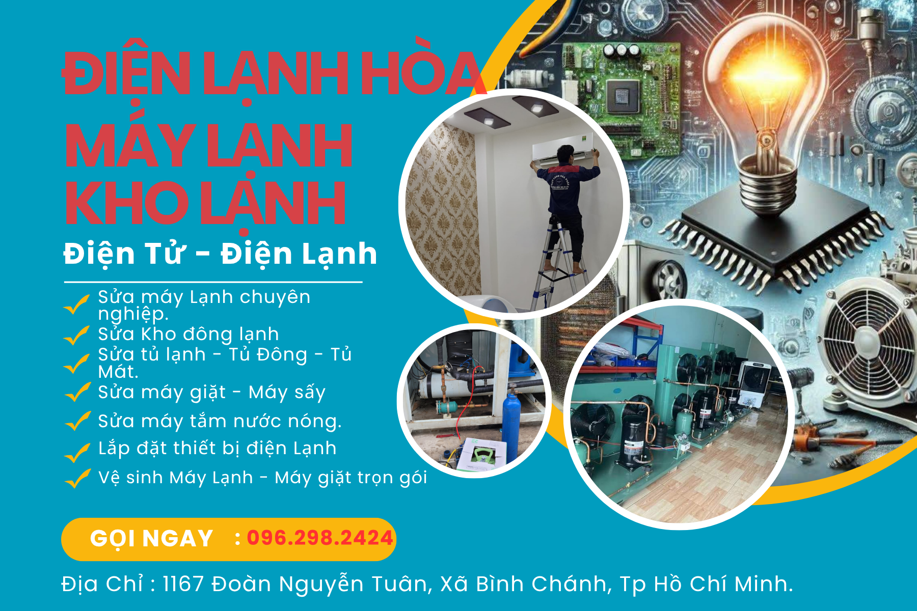 - Điện Lạnh Hòa : 1167 Đoàn nguyễn tuấn, X.Tân quý Tây Huyện Bình Chánh. Tp Hồ Chí Minh